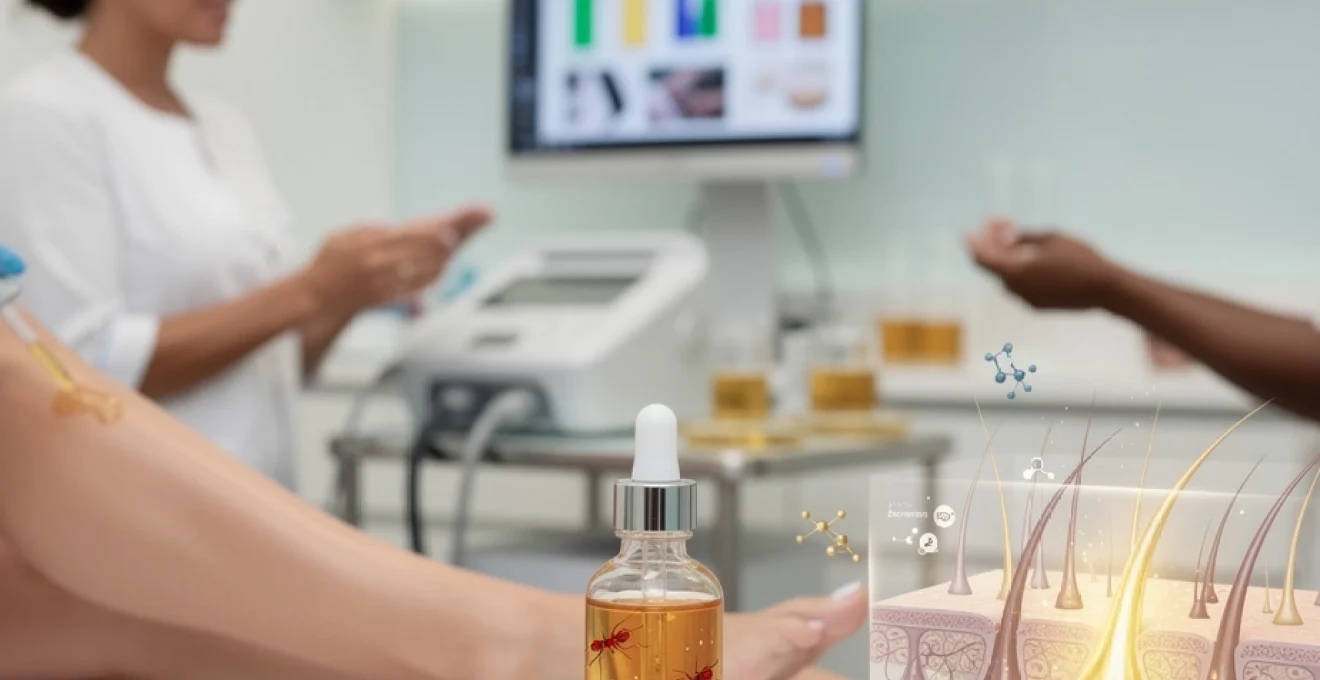 La compréhension des mécanismes d’action de l’huile de fourmi nécessite une analyse approfondie de sa composition chimique unique. Cette huile tire son nom de son origine historique, lorsque les femmes orientales utilisaient directement les œufs de fourmis pour leurs propriétés anti-pilaires. Aujourd’hui, la formulation moderne de cette huile s’appuie sur une combinaison soigneusement équilibrée d’actifs naturels reproduisant les effets de l’acide formique original.